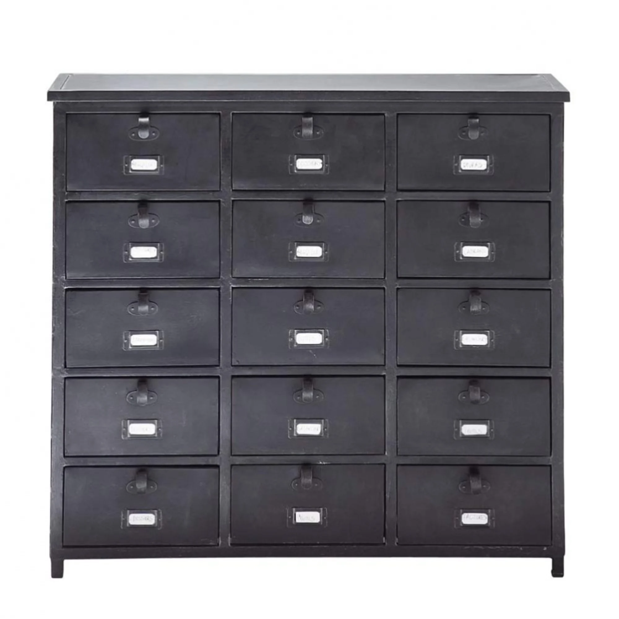 Pour mieux vous représenter une variable, imaginez un grand meuble avec des tiroirs (voir figure ci‑dessous). Les variables sont les tiroirs. Chaque tiroir comporte une étiquette, c’est le nom de la variable, et c’est grâce à ce nom que l’on sait quel tiroir ouvrir et quelle valeur utiliser. Le tiroir est petit et ne peut contenir qu’une valeur. Donc i peut valoir 1 ou 2, mais pas 1 et 2 à la fois. Par contre i pourrait contenir une liste qui contient les valeurs [1, 2]. Cependant, i ne peut contenir qu’une seule liste à la fois et pas par exemple deux listes [1, 2] et [3, 4].