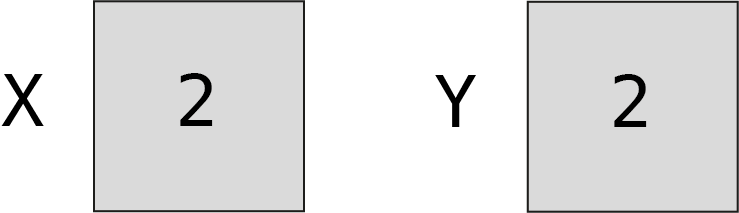 Écrire un algorithme qui échange les valeurs de deux variables. Par exemple, si la première variable X contient 1 et la deuxième variable Y contient 2, à la fin de l’algorithme X contient 2 et Y contient 1. Pour rappel, une variable peut contenir une seule valeur à la fois.